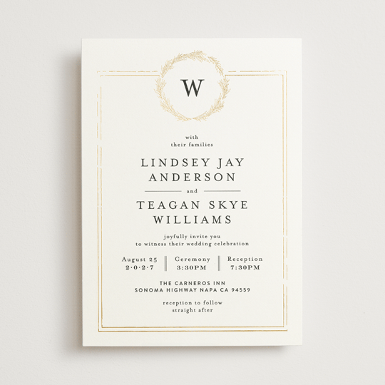 Gold Foil Letterpress Wedding Invitations With Monogram Laurel