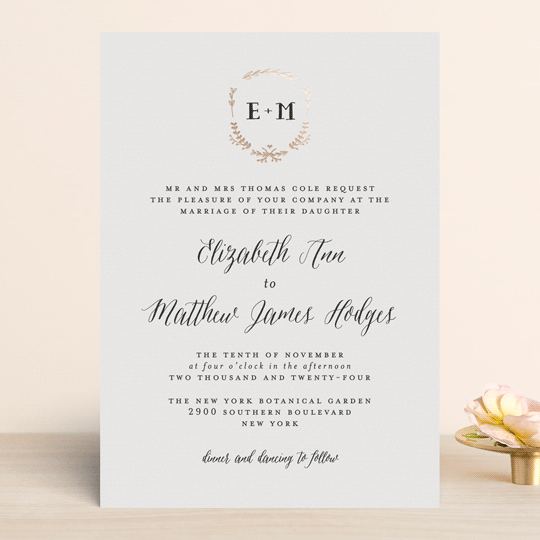 Little Wreath Foil Pressed Wedding Invitations By Phrosne Ras Minted