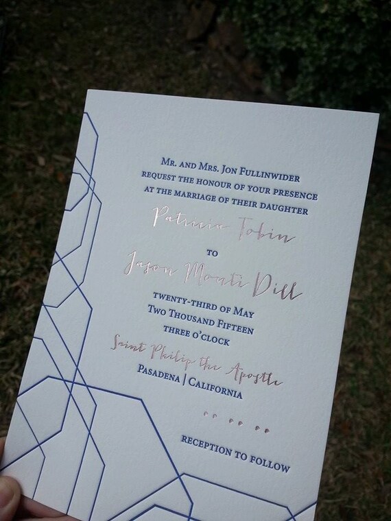 Rose Gold Foil And Navy Letterpress Wedding Invitations Etsy