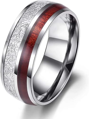 8mm Carbon Fiber Tungsten Mens Ring Meteorite Silver Tungsten Rings