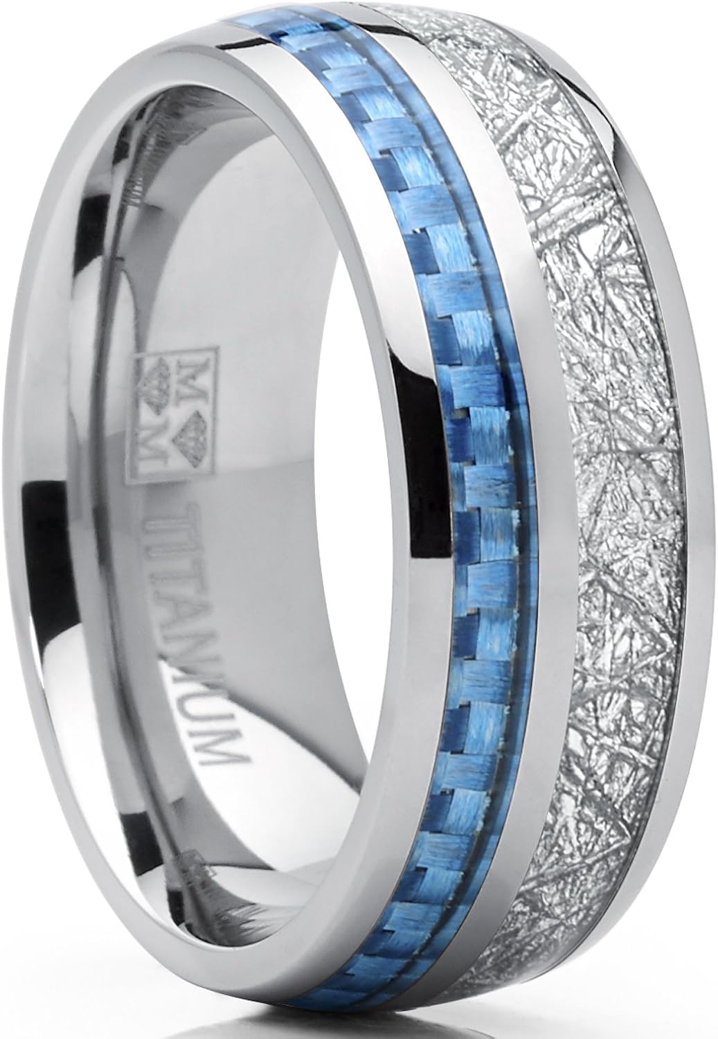 Mens 10mm Blue Carbon Fiber Meteorite Inlay Titanium Wedding