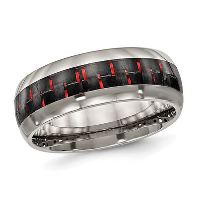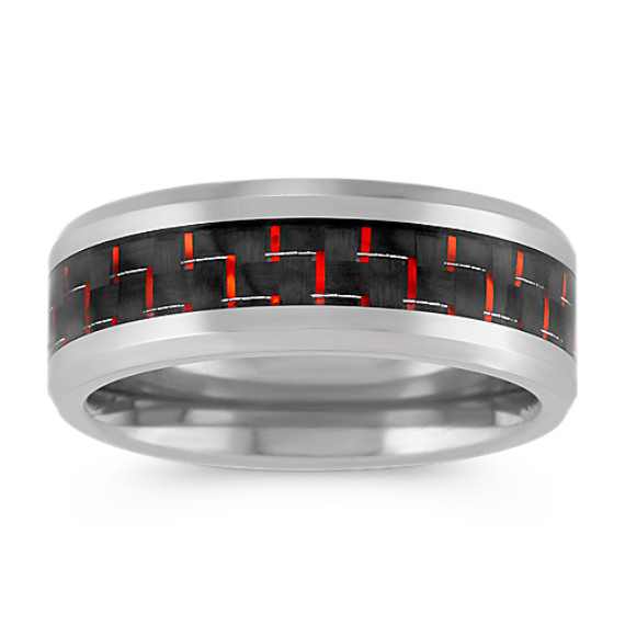 Mens Wedding Band In Titanium With Red Carbon Fiber Accent 8mm