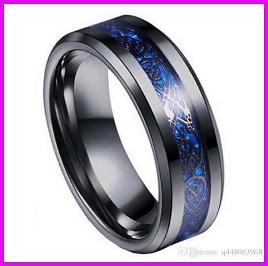 Jajafook Men S 8mm Blue Carbon Fiber Black Celtic Dragon Titanium