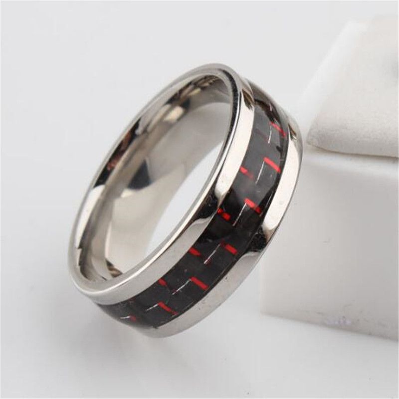 Punk Titanium Steel Hitam Carbon Fiber Mens Cincin 6 Gaya Merah