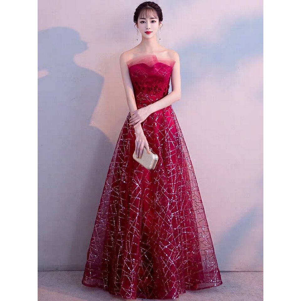 Party Toast Formal Dress Strapless Evening Chinese Red Wedding Dresses