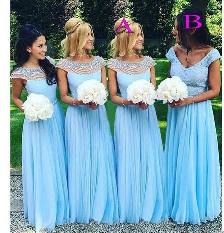 Hot Price 373e39 Vestido Madrinha Sky Blue Chiffon A Line Long