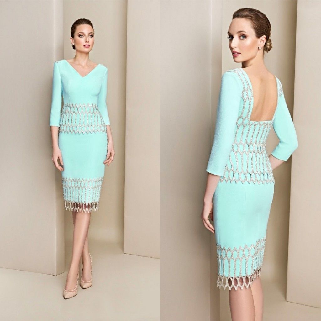Light Sky Blue Mother Of The Bride Dresses With Jacket V Neck Knee