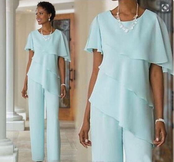2020 New Sky Blue Mother Pants Suits Wedding Guest Dresses Crew