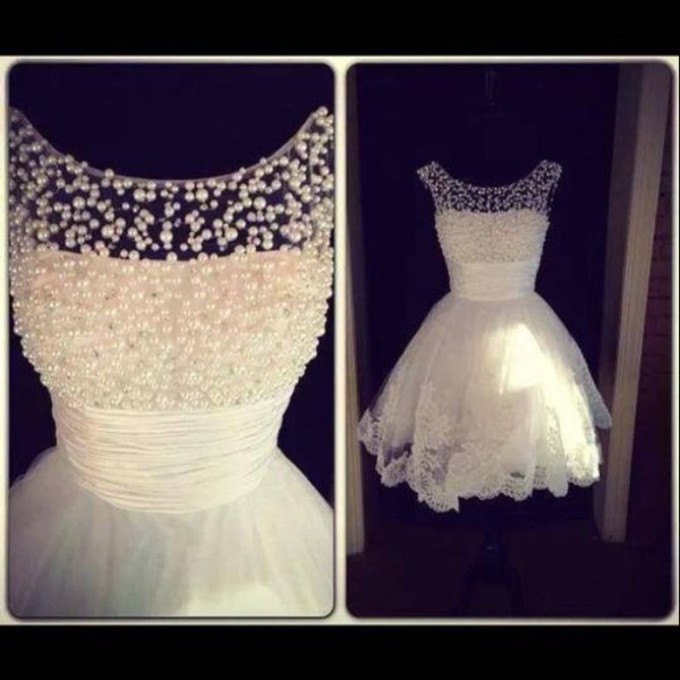 New Style Scooped Neckline Beaded Pearls Lace Short Wedding Dresses Bride Dress Prom Dresses Homecom On Luulla