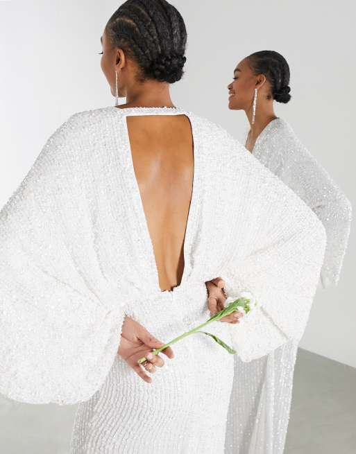 Asos Edition Sequin Kimono Sleeve Wedding Dress White In 2020