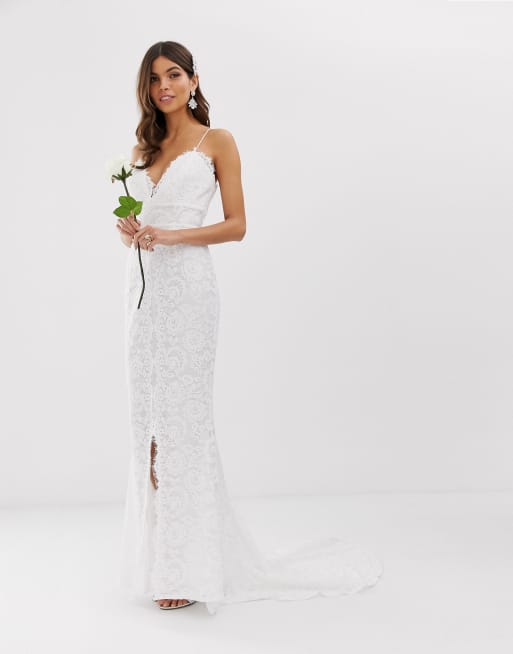 Asos Edition V Neck Lace Wedding Dress Ivory Myonewedding Co Uk