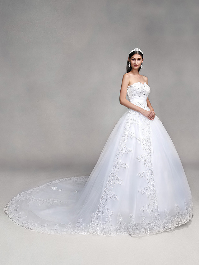 Ball Gown Sweetheart Neckline Court Train Tulle Wedding Dress With
