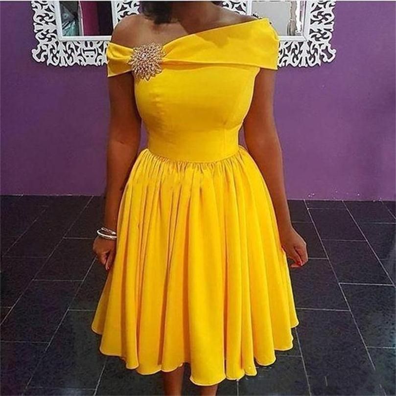 Yellow Knee Length Bridesmaid Dress 58 Off Dktotal Dk