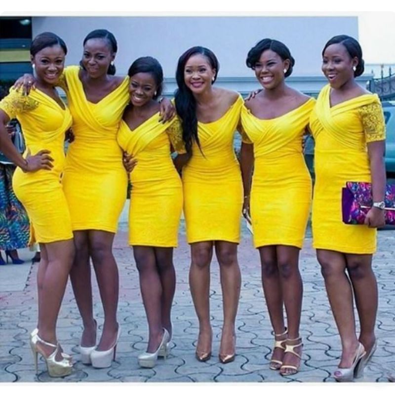 Knee Length Yellow Bridesmaid Dresses